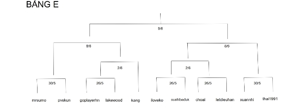 The preliminary is composed of 8 groups' knock-out tournaments, and it is also divided by gender, which means there are 6 male group tournaments and 2 female group tournaments. After the preliminary, the 8 league winners play a Swiss league to figure the top of the tops out.